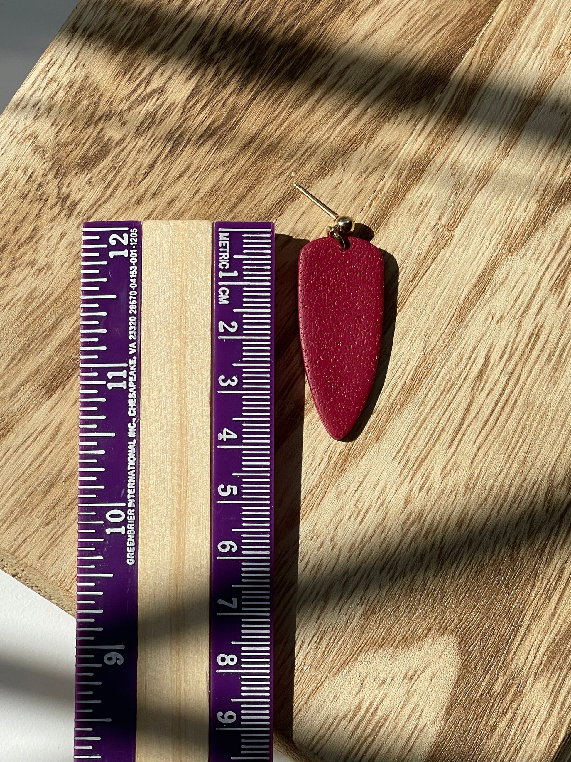 These lightweight polymer clay earrings are comfortable for all-day, everyday wear. This pair features garnet-colored clay.