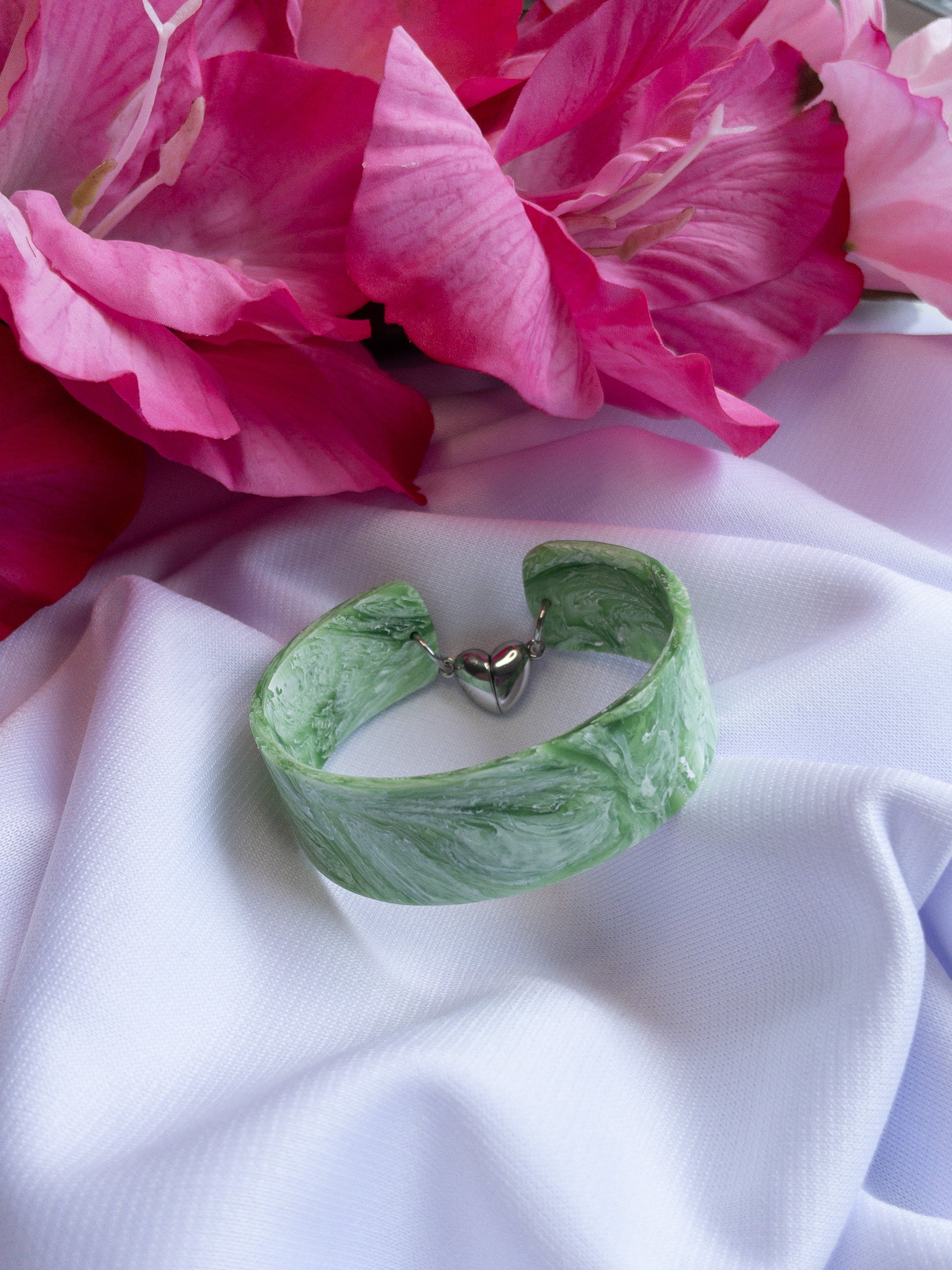 Every bracelet made by Lauren Ashlee Creations consists of polymer clay as the main component, and some products may have additional elements such as paint, foil, glitter, or resin. We use hypoallergenic stainless steel magnetic clasps with our cuff bracelets for easy wear and removal.