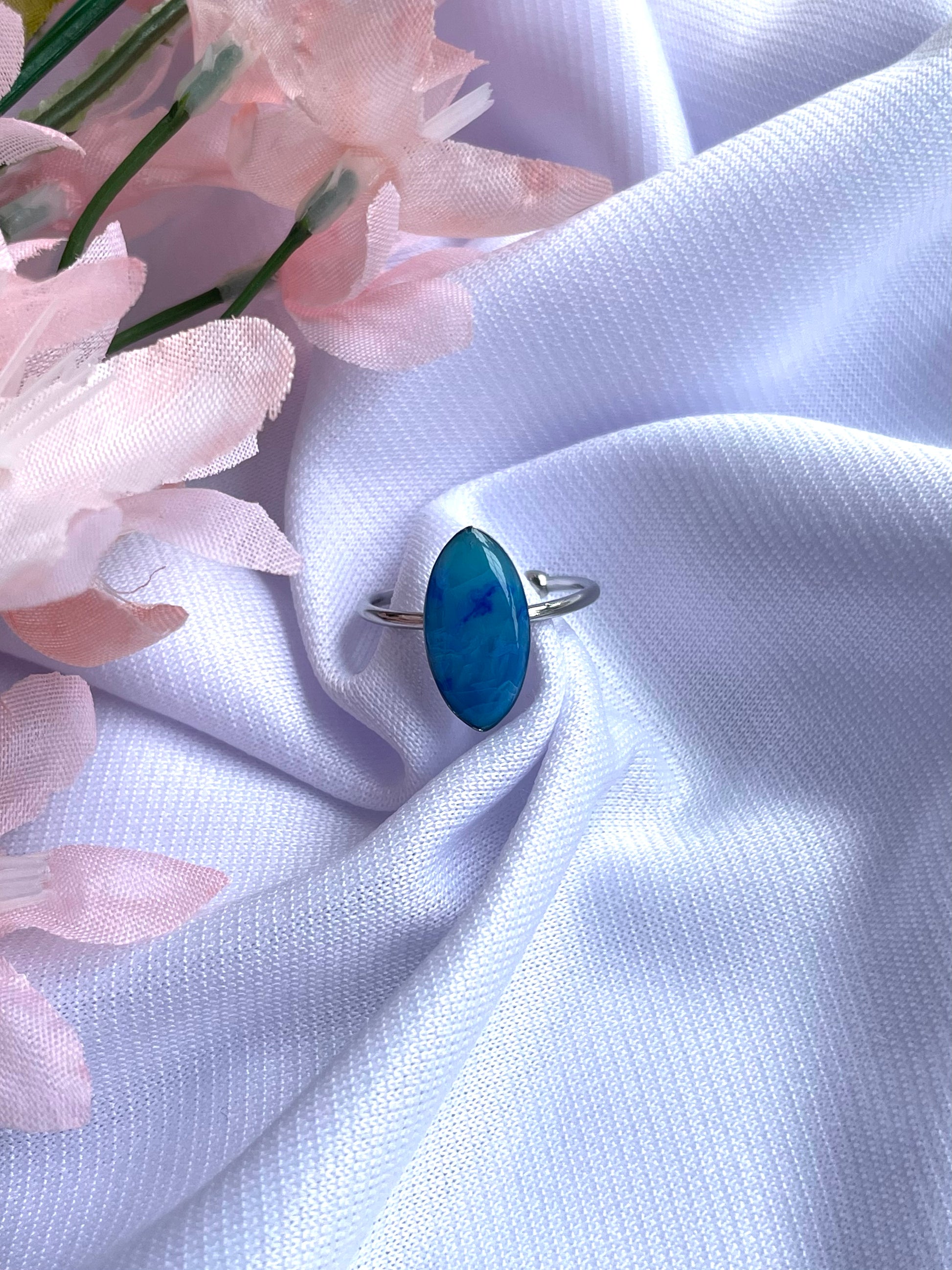 This unique, handcrafted ring features polymer clay with a resin finish on an adjustable stainless steel base.