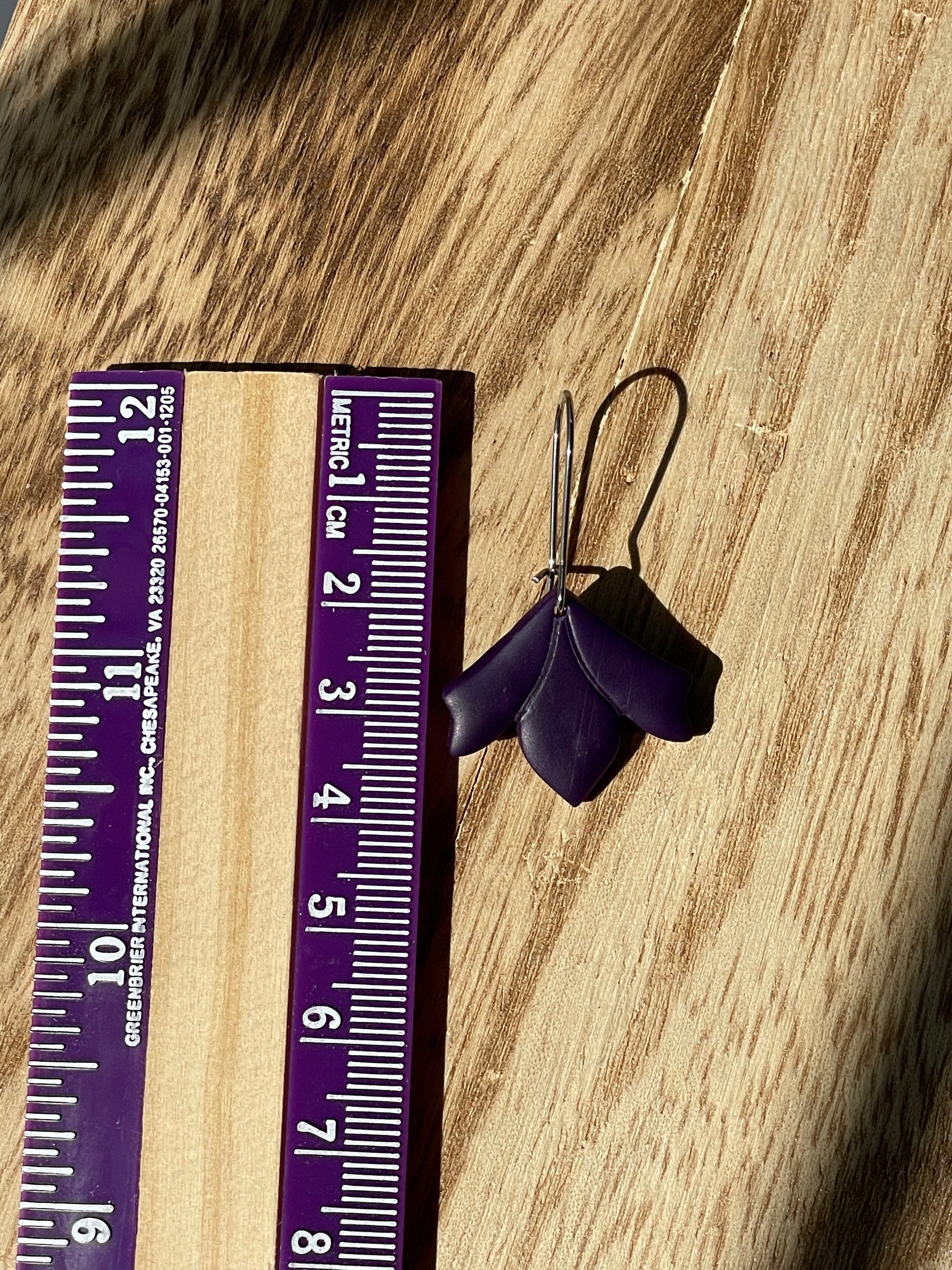 These lightweight polymer clay earrings are comfortable for all-day, everyday wear. This pair features purple clay on kidney ear wires.