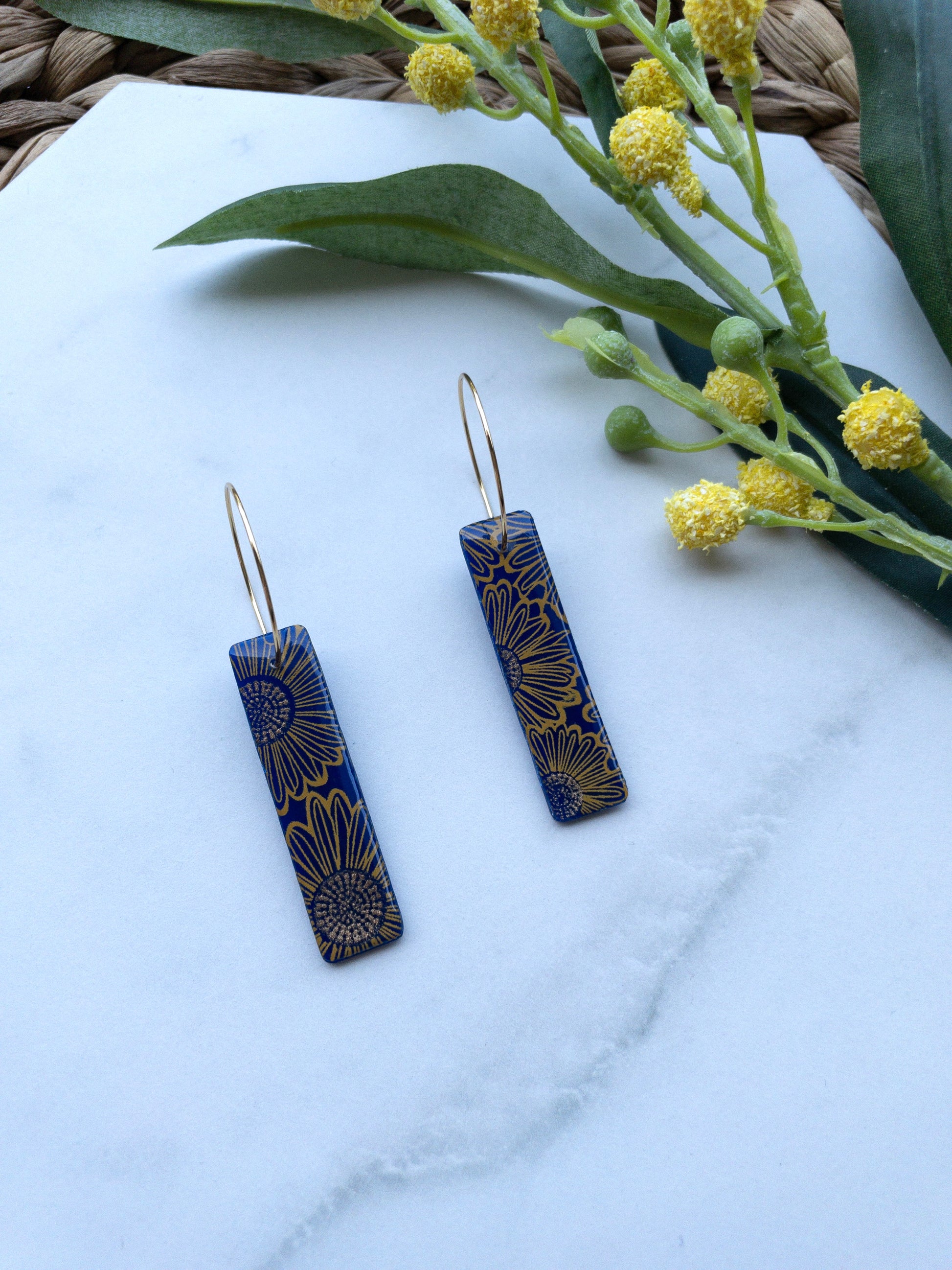These lightweight polymer clay earrings are comfortable for all-day, everyday wear. They appear navy blue until held up to the light when they become a gorgeous, translucent sapphire blue.